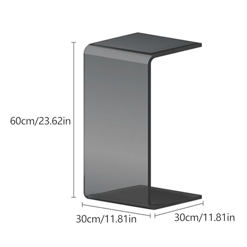 Clear Acrylic C Shaped Side Table End Table for Couch Nightstand Minimalist Bedside Tables for Living Room Study Lightweight(Gray,60cm)