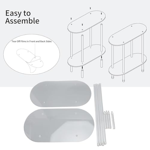Clear Side Table Acrylic 2 Tier Oval, Transparent Nightstand End Table for Living Room Bedroom Office – Modern Detachable Design, Lightweight Yet Sturdy, Versatile Usage