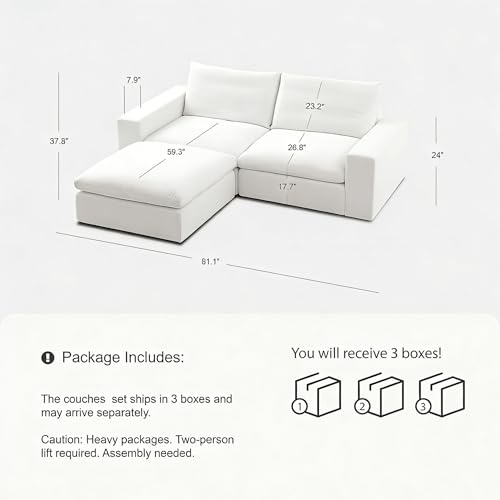Cloud Couch Sectional 81.1” Oversized Modular Deep Seat Sofa L Shaped Comfy White Cloud Couch with Washable Cover for Living Room Loveseat with Ottoman | Water repellent