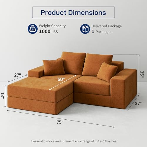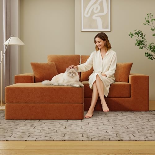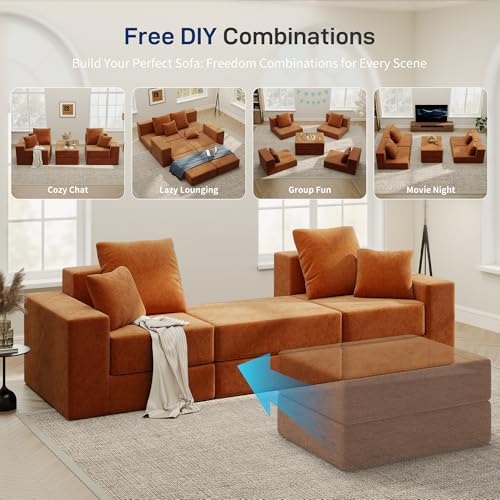 Cloud Modular Sectional Sofa, Comfy Boneless Couch for Living Room, Modern L-Shaped Couch with Reversible Chaise, Customizable Sleeper Sofa with Non Slip, No Assembly & Deep Seat, Orange