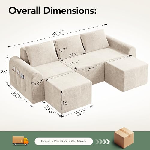 APARTMENT-FRIENDLY SIZE WITH MODERN MINIMALIST DESIGN : Compact yet spacious, this 86.6” sectional sofa is ideal for apartments, condos, home theaters, or modern living spaces. Easy to maneuver through tight doors and hallways, it blends clean minimalist aesthetics with practical comfort for everyday living.