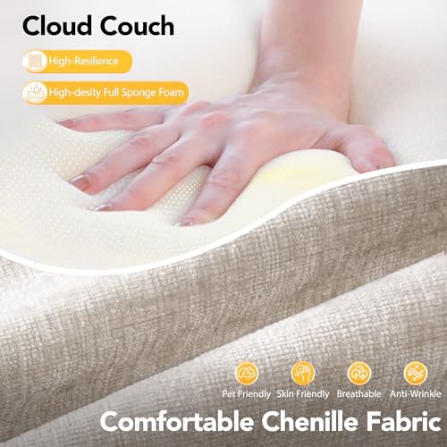 CLOUD-STYLE DEEP SEAT COMFORT WITH SOFT CHENILLE FABRIC : Designed with a legless, low-profile silhouette and wide deep seating, this cloud couch creates a soft, floating lounging experience. Upholstered in skin-friendly chenille fabric and filled with high-resilience foam, it delivers plush comfort with balanced, everyday support.