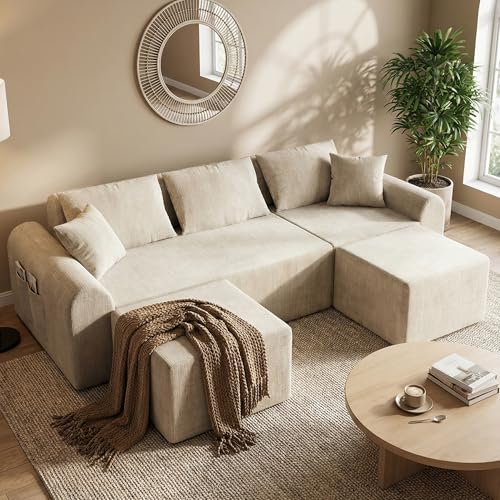MODULAR 3-SEATER SOFA WITH 2 MOVABLE OTTOMANS : This 4-piece modular sectional includes a 3-seat sofa and two independent ottomans, allowing flexible layouts for apartments, living rooms, or open spaces. Easily reconfigure into L-shaped, U-shaped, chaise, or extended seating setups to match your space and lifestyle.