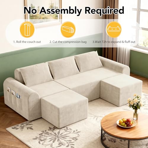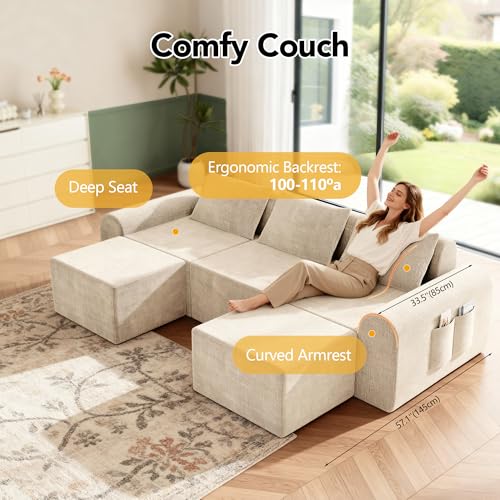 NO ASSEMBLY CLOUD COUCH – UNBOX, EXPAND & RELAX : No tools, no hardware, no hassle. This 86.6” boneless modular sectional sofa arrives vacuum-compressed for easy delivery through narrow hallways and doorways. Simply unbox and allow up to 72 hours for full foam expansion, restoring the sofa to its original shape and signature cloud-like comfort.