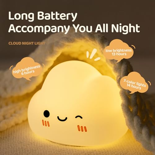 【Safe Night Light for Baby Nursery】- This adorable cloud night light is made of food-grade and BPA-free silicone and it’s as safe as cuddling your baby toddler. It is so soft it can be squeezed like a stress ball. Don’t worry if it falls over, it won’t break. It emits a cozy and soft light that won’t harm your baby’s eyes. In addition, it acts like a bedtime companion to help your little angel fall asleep.