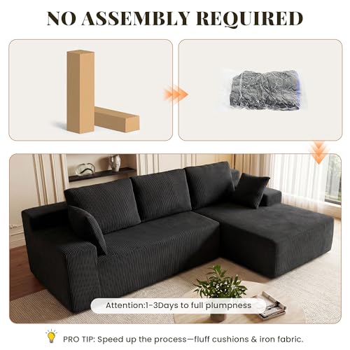 No assembly required: Say goodbye to complicated assembly! Simply unbox your boneless L shape sectional couch, position the modules, we recommend allowing 36-48 hours to fully fluff up, and gently pat each section to expands to its full glory