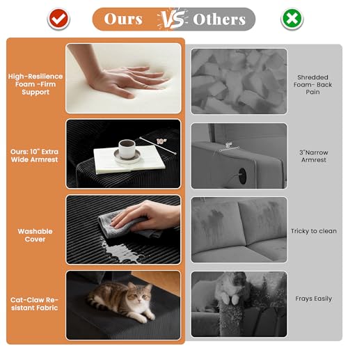 Extra-Long Fabric: Indulge in our comfy corduroy couch crafted with precision weaving, offering a silky-smooth touch. The 0.1-inch extra-long corduroy fabric strikes a perfect balance between softness and breathability, ensuring lasting comfort
