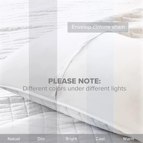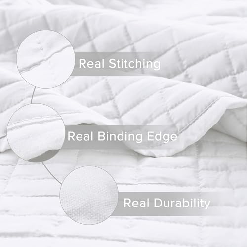 Comfort Spaces Kienna Quilt Set-Luxury Double Sided Stitching Design Summer Blanket, Lightweight, Soft, All Season Bedding Layer, Matching Sham, White, Coverlet Twin/Twin XL(66″x90″) 2 Piece