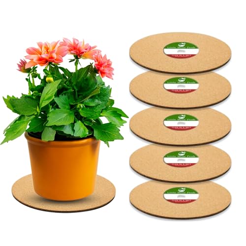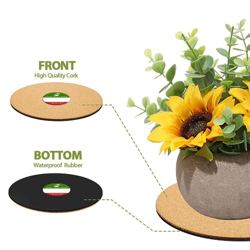 Cork Plant Mats (10″ Diameter, 5-Pack) with a Rubber Base – Absorbent Round Plant Coasters for Kitchen – Hot Pads – Arts & Crafts Projects – Indoor and Outdoor Use