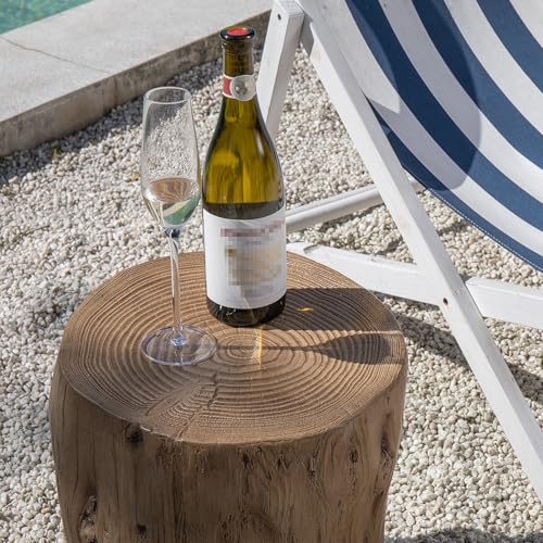 COSIEST 2 Pieses Outdoor Side Table, Hand-Painted Wood Stump Side Table Set of 2, Faux Wood Stool, Ottomans, Plant Stand, Deck or Garden (Light Oak)