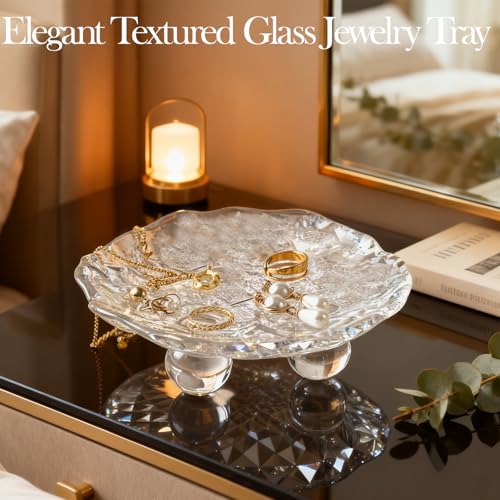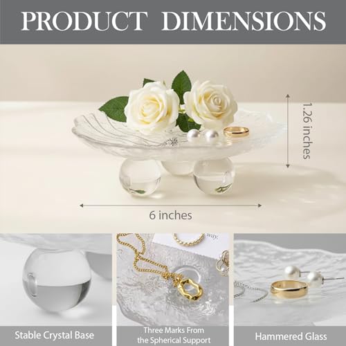 Elegant Design: The Cute Crystal Jewelry Trinket Tray features a stunning hammered texture that captures the essence of refined style. Measuring 3.2cm in height and 15cm in diameter, this decorative ring holder beautifully complements your vanity or dresser, adding a touch of sophistication to your space.