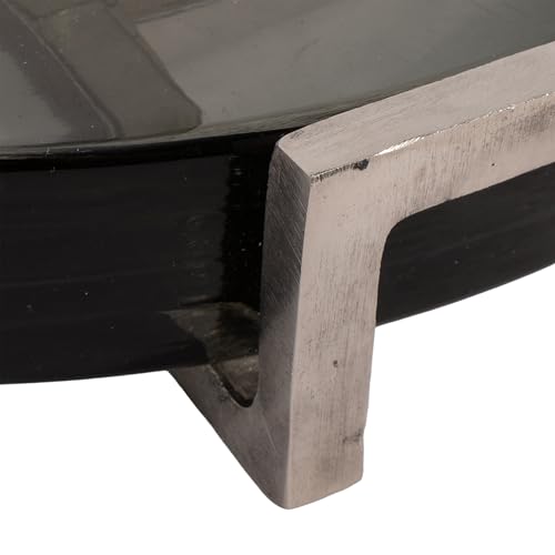 Decorative Round Glass Tray with Handles for House Decor – Stylish Centerpiece Table Decorations or Bathroom Vanity Tray – Modern Home Accent for Jewelry, Bed, or Trinket Dish – 15″ Silver & Black