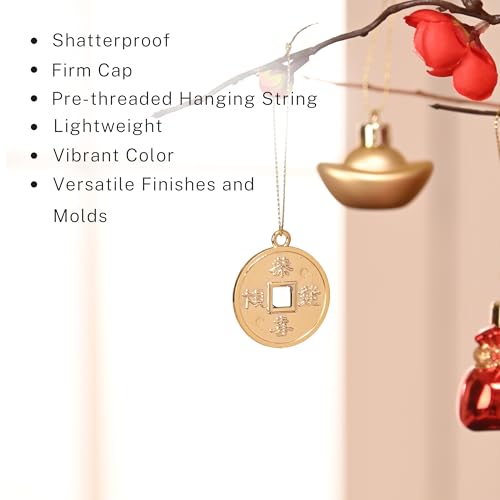 【Variety of Designs and Finishes】Our red and gold Christmas plastic ornaments blend glitter, matte, and shiny finishes. Featuring unique shapes like gold ingots, lucky bags, and coins, these festive ball decorations add traditional charm and prosperity to your holiday tree