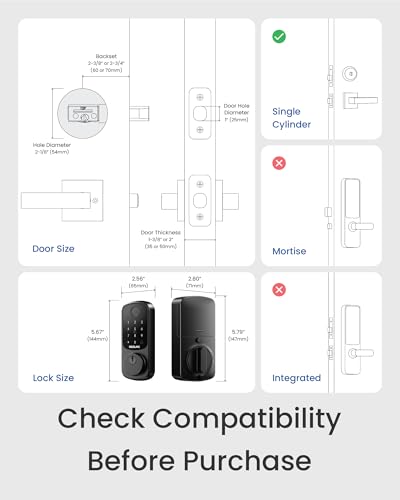 𝐔𝐧𝐥𝐨𝐜𝐤 𝐰𝐢𝐭𝐡 𝐄𝐚𝐬𝐞 & 𝐒𝐞𝐥𝐟-𝐥𝐞𝐚𝐫𝐧𝐢𝐧𝐠 𝐀𝐈: Unlock with fingerprint recognition, PIN codes, 2 physical keys, app control, eKey, fobs, or use your voice with Alexa/Google Voice Assistant. For Deadbolt Smart Lock B200, the speed of fingerprint recognition is less than 0.3s. Next-generation fingerprint unlocking technology, upgraded through AI learning and validated by millions of users.
