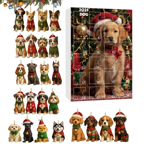 features novelty dog breed designs, making it a delightful addition to winter holiday celebrations and seasonal decor. Great for use as gathering props or decorative accents, these ornaments can be displayed on a tree, window, wall, door, mantel, or even in the yard. Designed to bring joy and festive cheer, this advent countdown calendar creates lasting moments while adding charm to your home during the most wonderful time of the year. Its versatile design provides it complements various settings, appealing to dog enthusiasts and collectors who appreciate thoughtful craftsmanship.