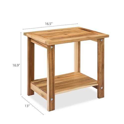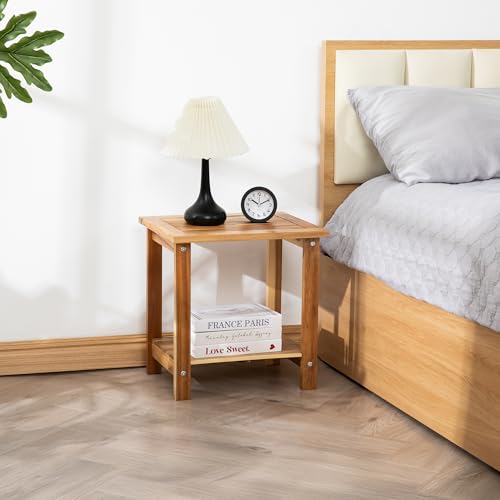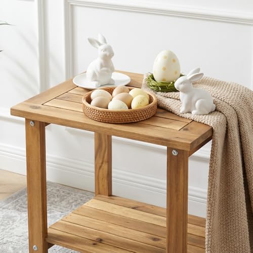 PREMIUM ACACIA WOOD CONSTRUCTION: Crafted from premium acacia wood with stainless steel hardware, this side table combines durability with aesthetic charm. Its smoothly rounded edges provide a refined look and enhanced safety, while the sturdy construction prevents finger entrapment, making it a child-friendly end table option for the living room or outdoor spaces.