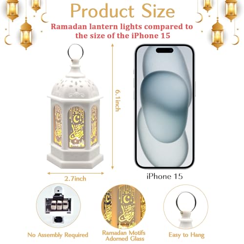 【Eid Decorations】Enhance the elegance of your festive ambiance with our exquisite Ramadan and Eid lights. These mini lanterns are moderately sized 5.1 × 2.7 inches, making them suitable for both home decor and celebratory events. Our Ramadan gifts come with 3 batteries that can be replaced at any time, ensuring uninterrupted festive joy and adding charm to Ramadan, Eid and other celebrations. (This product is a set of 2 lanterns)