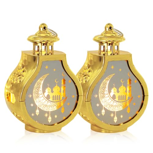 Eid Mubarak Decorations, Ramadan Lantern Lights 2 Pack, Eid Table Decorations, Eid Decorations for Home, Mini Ramadan Lights, Ramadan Eid Gifts, Ramadan Decorations for Home Party Table Windows