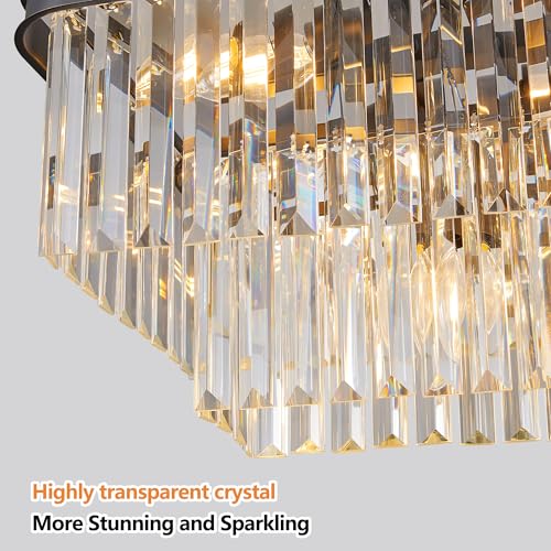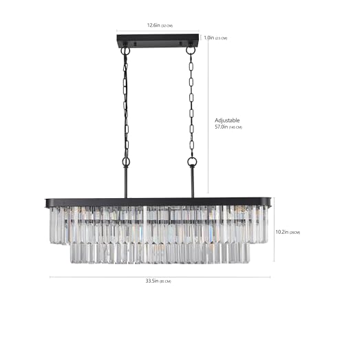 Enhance Home Decor with Adjustable Rectangular Crystal Chandelier, Modern Industrial Iron Lights for Living Room, Kitchen, Black