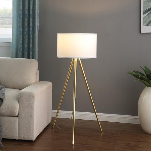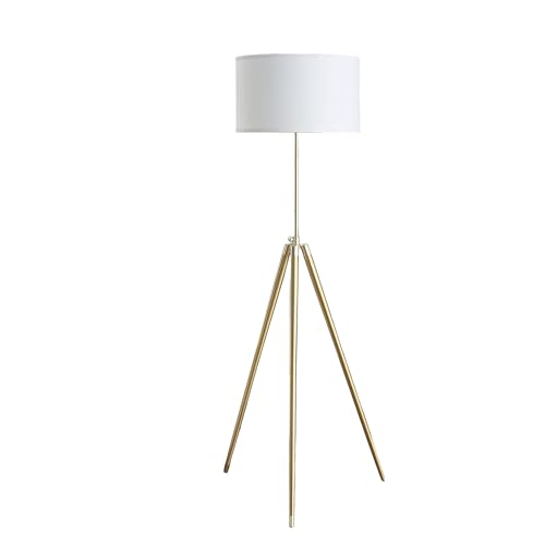 Enhance Your Decor with Adjustable Height Brass Tripod Floor Lamp, Modern Design, for Living Room or Bedroom, Gold and White
