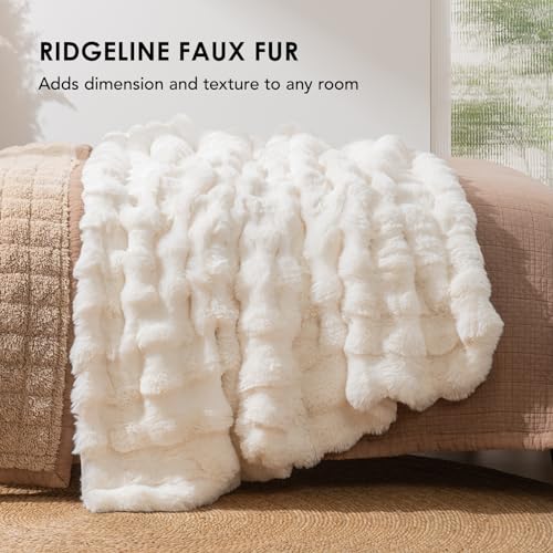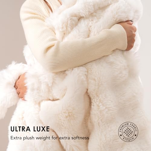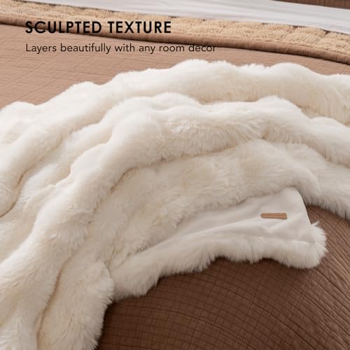 EVERGRACE Ultra Soft Luxury Fluffy Ridgeline Faux Rabbit Fur Throw Blanket, Thick Warm Bubble Throw for Bed, Cozy Plush Reversible Blankets for Couch, Chair, Sofa, Ivory White, 60×80 Inches, 870 GSM