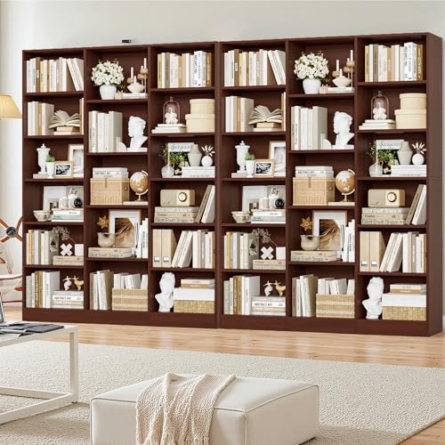 FACBOTALL Triple Wide Bookshelf, 6 Tier Large Bookshelf, Bookcase with 17 Open Display Shelves, 74” Tall Bookcases and Bookshelves for Living Room, Home Office, Library, Cherry