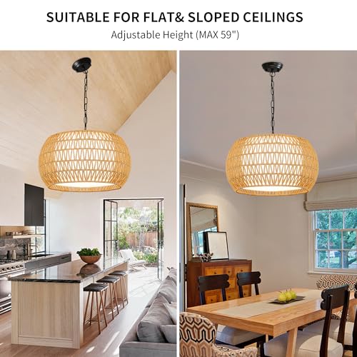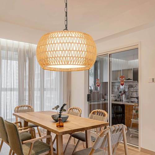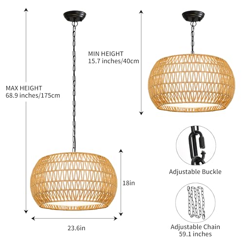 【Unique Design & Wide Application】The rattan chandeliers for dining room is perfect for adding a touch of bohemian farmhouse style to your home ornament.farmhouse chandeliers suit for dining room,hallway,kitchen,living room,bedroom, this rattan Pendant light creates a warm and inviting ambiance that complements any interior