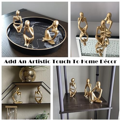 FJS Gold Thinker Statues for Table Decor Abstract Art Sculpture Set of 3 Gold Figurines House Decorations for Home Living Room Office Shelf Bedroom