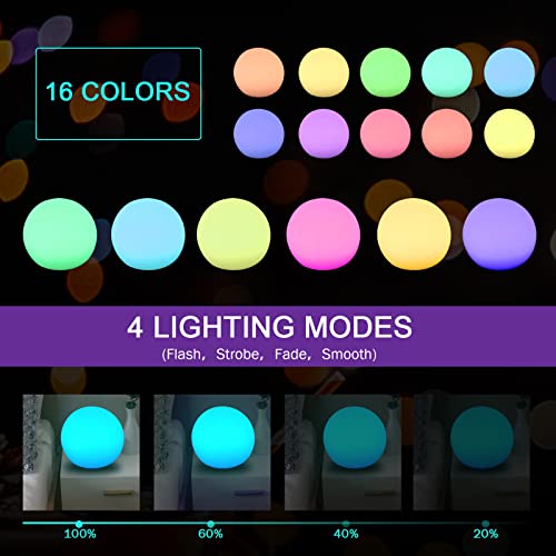 【Colorful LED Orb Set with Remote Control】:Includes 2 color orbs, each offering 16 vibrant colors and 4 lighting modes (fade, smooth, flash, strobe). This LED orb light is easy to control via remote or button, perfect for customizing your ambience.