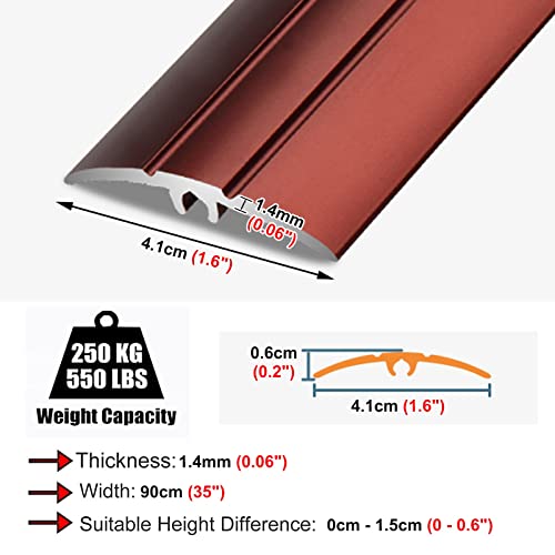 Sturdy Metal Transition Strip – Made of durable aluminum alloy material. It’s lightweight, but strength, withstands high foot traffic areas in the home. Load: 250kg/550lbs.