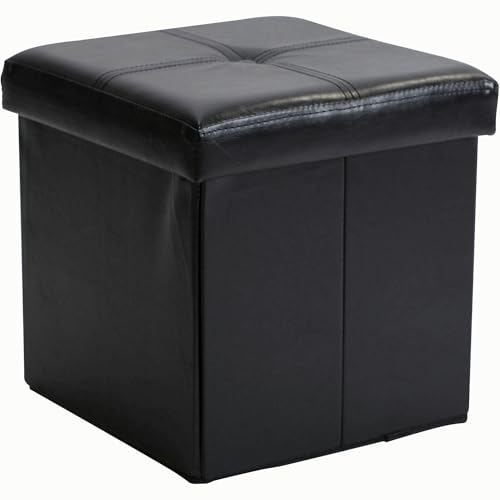 Foldable Storage Ottoman Cube, Black Faux Leather, 15x15x15 Inches, Padded Seat with Hidden Storage Space, 500 lbs Weight Capacity