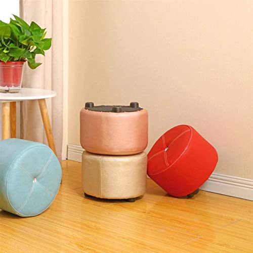 Footrest Ottoman Upholstered Foot Stool Round Leather Pouf Ottoman, Comfortable Footrest Stool Great for Coffee Table Change Shoes Stool Storage Footstool/B/31 * 31 * 23