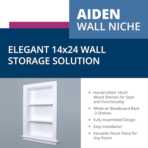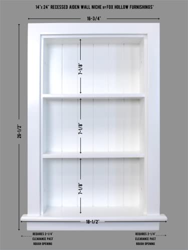 Fox Hollow Furnishings 14×24 Aiden Recessed Wall Niche Medicine Cabinet Replacement, in The Wall Bathroom Cabinet Insert Shelf/Shelves, Made in North America, Real Wood, NO MDF, Beadboard, White