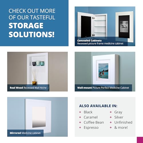 RECESSED MEDICINE CABINET ALTERNATIVE – Display and store amenities in this laundry room organization and bathroom storage cabinet with durable wooden cubbies