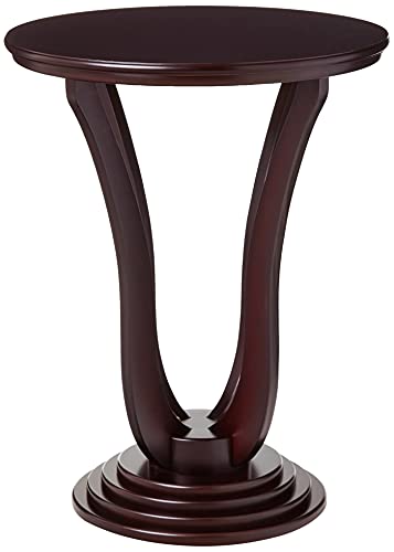 Versatile, stylish, and functional, the end table is a go-anywhere gem. Founded atop a pedestal base, this design combines traditional details with a modern flair, showcasing tapering arms that curve upward to hold a round tabletop. it’s perfect for highlighting a framed family photo or displaying a charming bouquet in the living room. Crafted from manufactured wood, it sports a neutral finish.