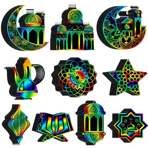 Generously Stocked for Festive Celebrations: with Ramadan around the corner, you can gear up for many fun activities with our abundant kit of 80 Ramadan scratch paper kits that includes 80 cards, 80 sticks and 80 ribbons; Whether you plan to share these joyous crafts with others or keep them for yourself, our package ensures you’ll not easily run short of materials