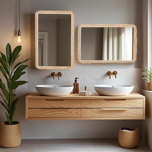 Be the first to review “FUIN 24×36 Large Wall Mirror, Wood Frame with Braided Seagrass and Wooden Bead, Vertical & Horizontal Coastal Mirror for Bathroom”