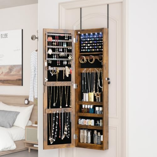 Wall or Door-Mounted, You can mount the jewelry organizer on the wall with the provided screws or hang this jewelry cabinet over the door using the brackets included.a lock and 2 keys to keep curious out and protect your valuables.