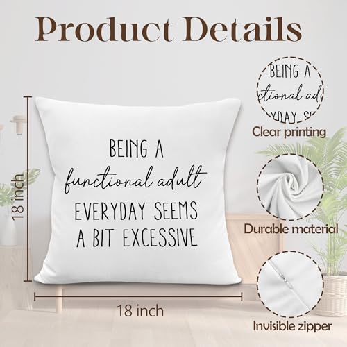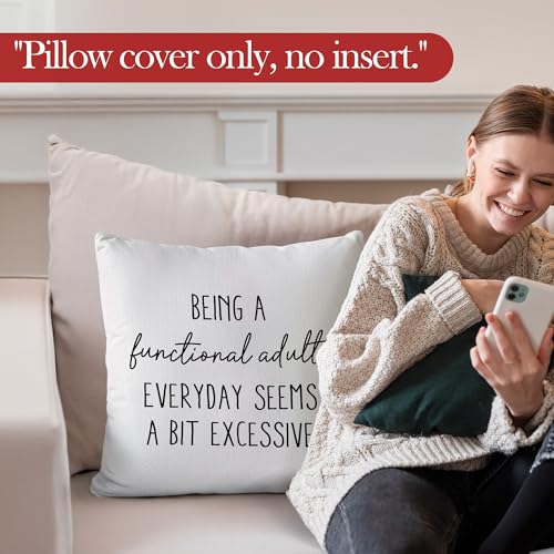 Funny Throw Pillow Covers, Sarcastic Gifts for Women Men, Being a Functional Adult Humorous Decorative Pillowcases Cushion Cases for Bedroom Living Room Decor, 18×18 Pillow Covers
