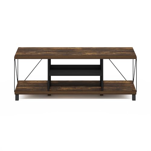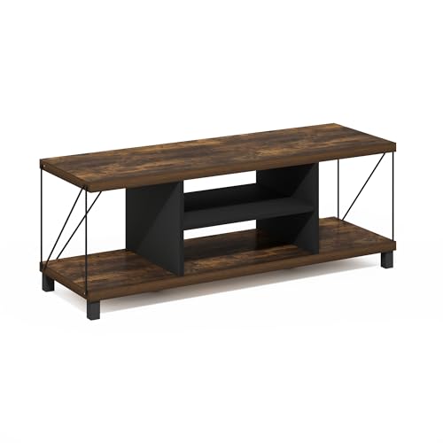 Furinno Besi No Tools Assembly Industrial Style TV Stand, Entertainment Center for 50 inch TV, Amber Pine/Black