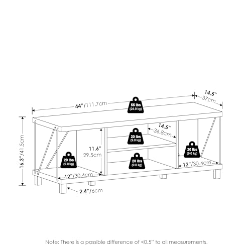 The Furinno Besi TV Stand blends industrial style with modern convenience, featuring a sturdy 1.2-inch thick tabletop for enhanced durability and support. Its no-tools assembly design makes setup quick and hassle-free. Perfect for any living space, it offers a sleek, functional solution for your entertainment needs. The TV stand is made of CARB-grade composite wood tested for durability and sturdiness. Assembly is easy with provided step-by-step instructions. Care instructions: wipe clean with a clean damped cloth. Avoid using harsh chemicals. Pictures are for illustration purposes. All decor items are not included in this offer. The product is entitled to a 1-year warranty against manufacturer defects. Fits Space, Fits Budget.
