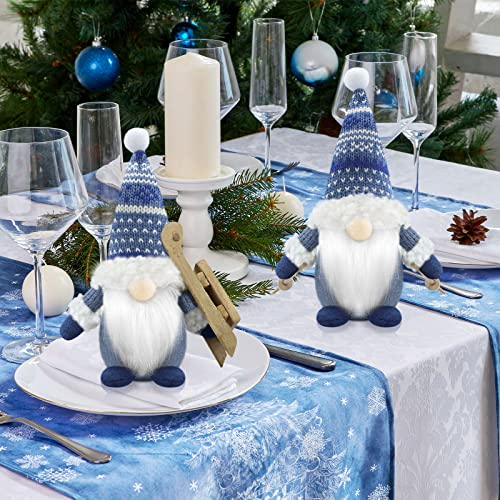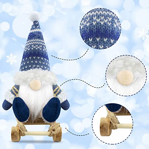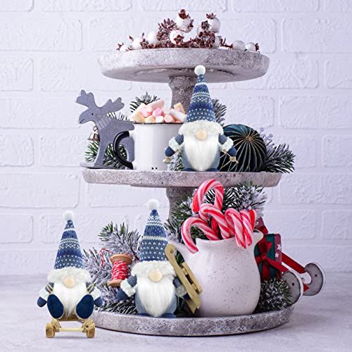 Gehydy Christmas Gnomes Decorations Set of 3 Mini Gnome with Sled Handmade Scandinavian Tomte Santa Xmas Decor for Home Kitchen Farmhouse Tiered Tray – Blue