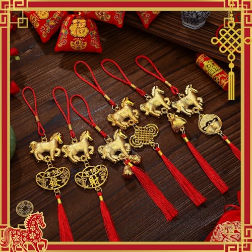 Geosar 2026 Chinese New Year Horse Charm Red Tassel Ornaments Chinese Knot Feng Shui Decorations for Lunar New Year Wealth Good Luck(12 Pcs,Horse Lucky Bag)