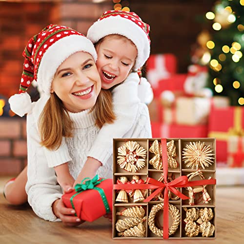 Traditional Yule Ornaments: you will get 27 pieces of Christmas tree decorations straw ornaments come in 9 styles, and are packaged in a nice gift box, a sufficient amount easy to meet your party or festival decoration needs, bringing a nice visual experience for you and your family