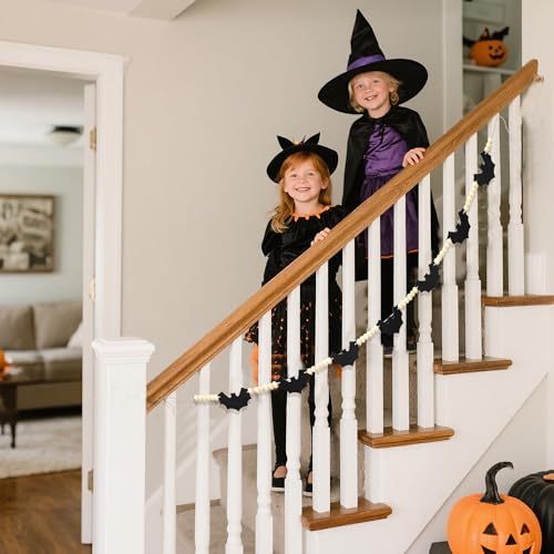 🎃【What You Will Get】You will receive a pre-assembled felt bats and wood bead garland banner — no need to thread anything! The garland comes fully strung on a natural jute rope measuring approx. 60 inches (5 feet), with black felt bats (approx. 4 inches wide) spaced perfectly. Simply unpack and hang — decorating made easy!