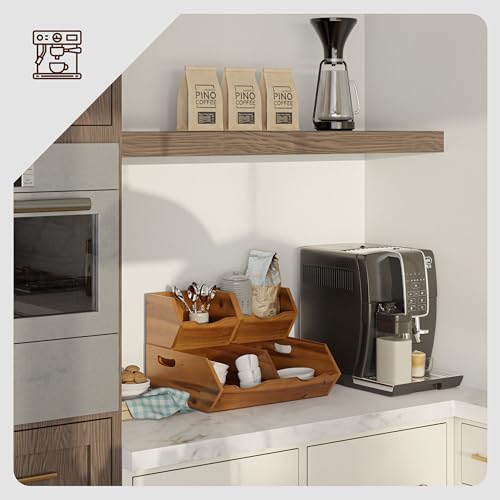 HOLANA Onion and Potato Storage Bins – Acacia Wood Pantry Baskets Organization and Storage – Wooden Stackable Baskets for Bread, Fruit, Vegetable – Onion Basket for Kitchen Counter (Patent Pending)