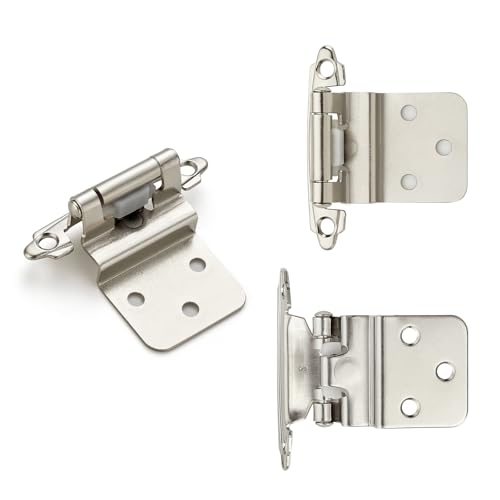 Home Expert 4 Pack (2 Pairs) 3/8 Inch Inset Cabinet Hinges, Self-Closing Face Mount Hinges with Door Bumpers, Satin Nickel Silver for Kitchen Cabinets, Bathroom Vanities, Furniture Doors