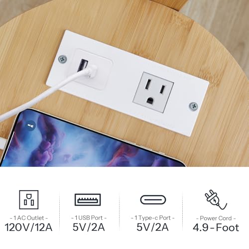 Convenient Charging: HOOBRO round end table features a built-in power strip below the top, with an AC outlet, a USB-A port, and a Type-C port for easily connecting multiple devices. The clever design also frees the top from cluttered wires, providing an organized environment