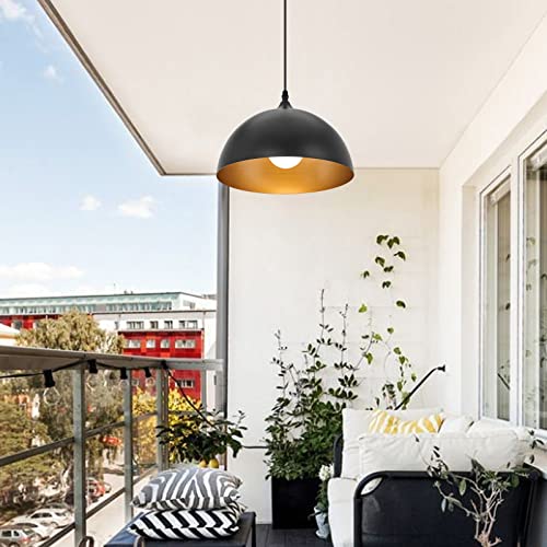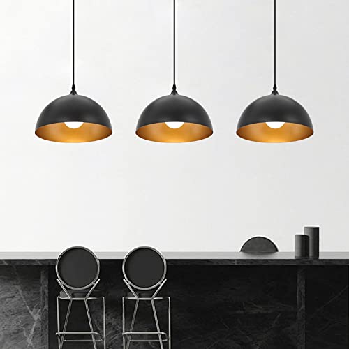 [Industrial & Retro Design]–3 pack pendant lights features a retro-style dome shade in a two-tone finish (matte black and gold), a design that creates a stark contrast.The outer paint is not easy to fall off and easy to clean.