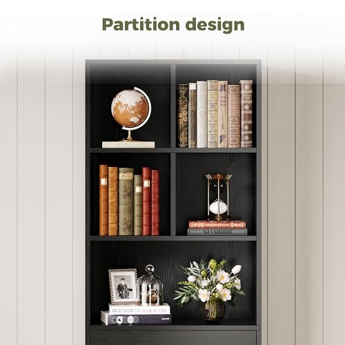 IRONCK Bookcase and Bookshelves, 70″ Tall Bookshelf Floor Standing 6 Tiers Display Storage Shelves, Book Shelf with Drawers for Home Office, Living Room, Bedroom, Library, Black